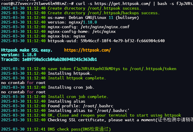 第二步:安装脚本,本站以Nginx续签为例,运行: