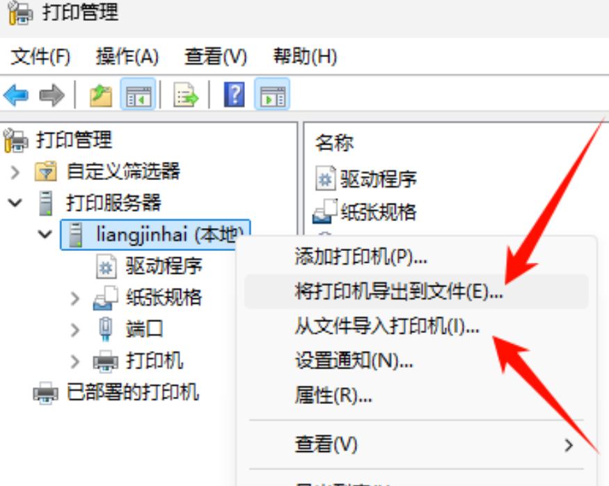 或按 Win + R,输入 printbrmui.exe,回车→ 打印管理,先导出